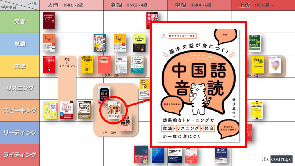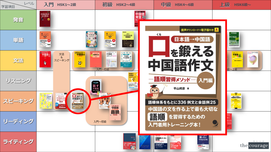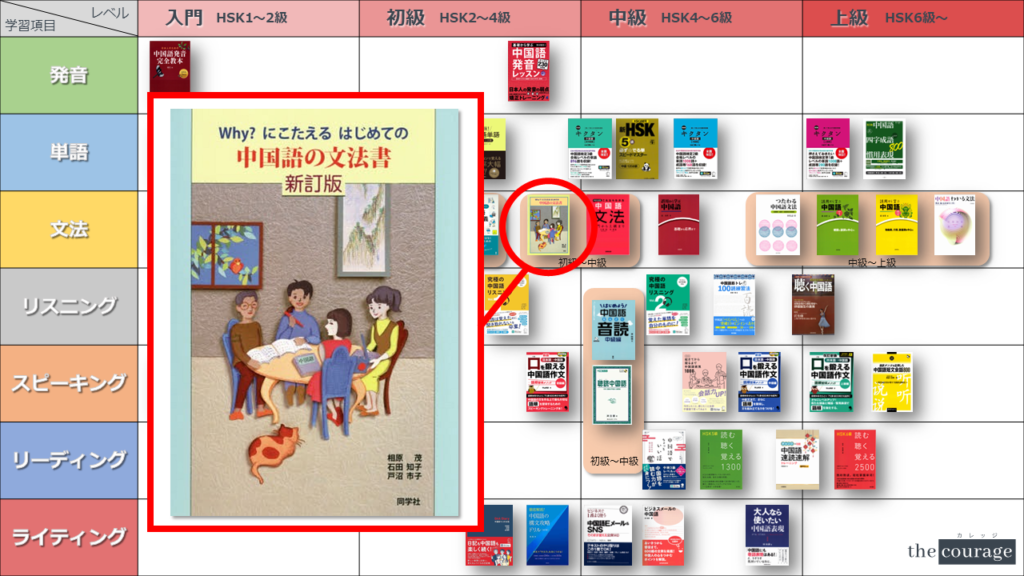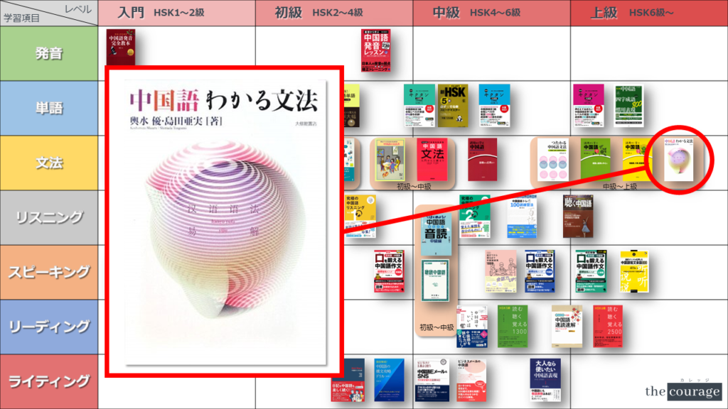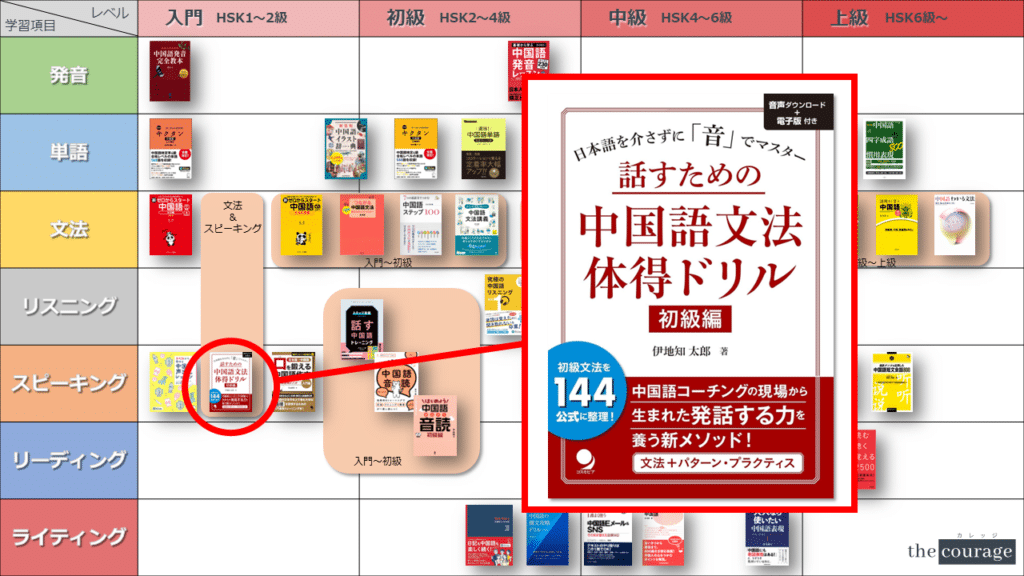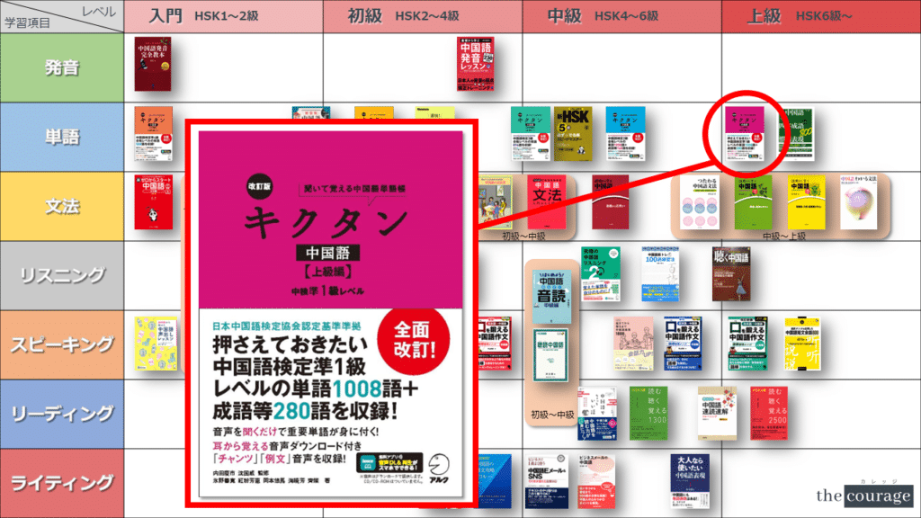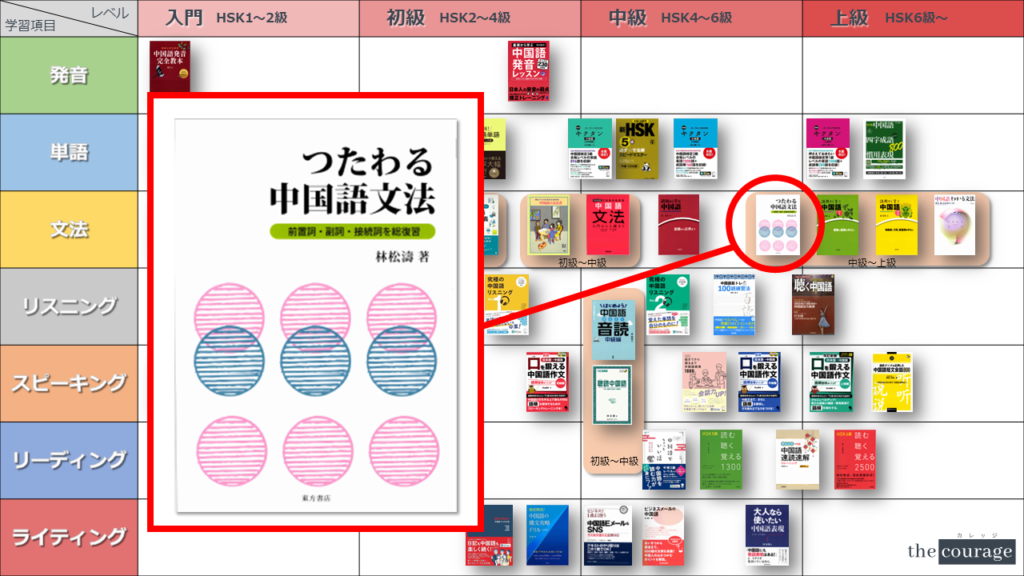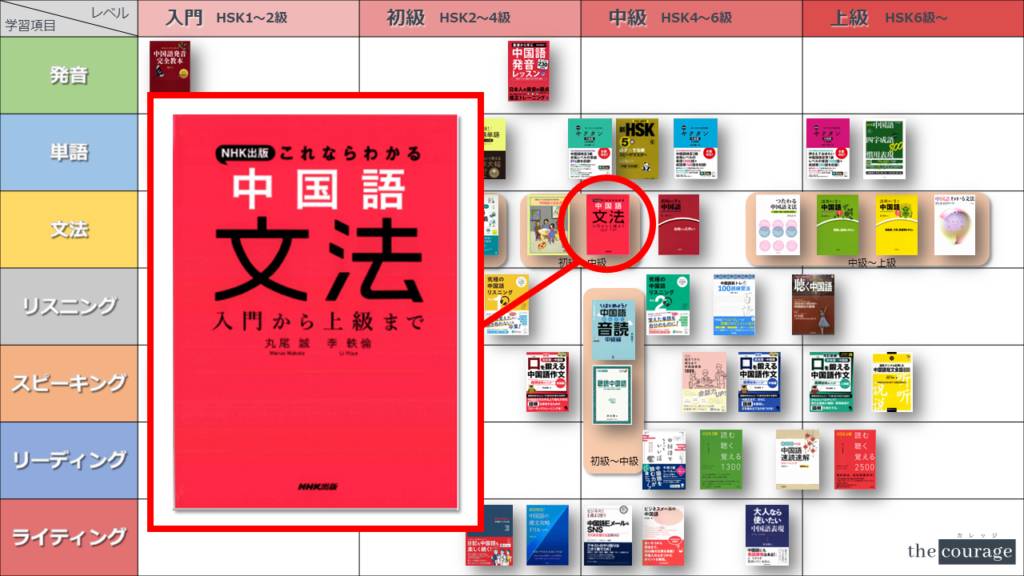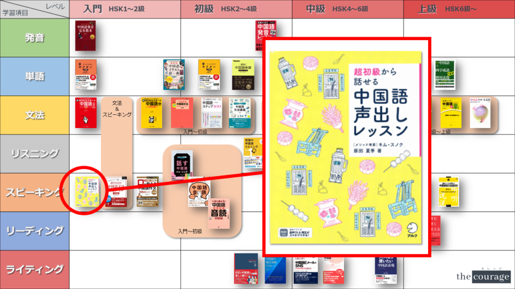 中国語学習者から「おすすめのテキスト、参考書を教えてください!」と相談を受けることが多いので、みなさんに役立つよう、パート別・レベル別の中国語学習のおすすめ参考書マップを作成しています。(毎年更新:2022年版、2023年版、2024年版、2025年版)