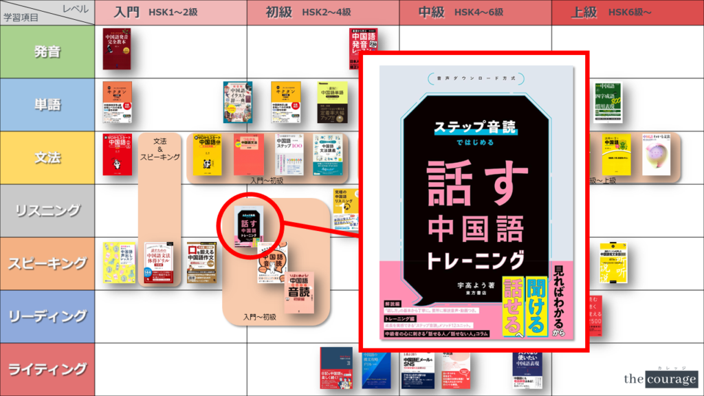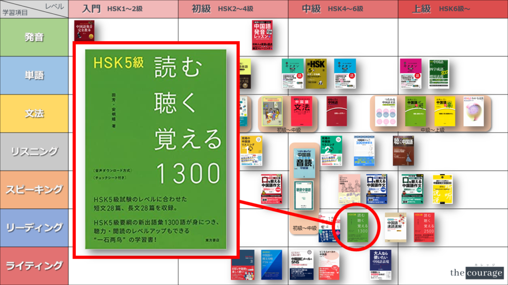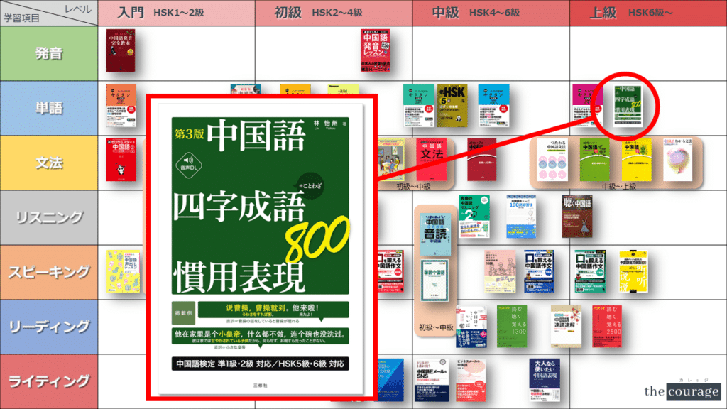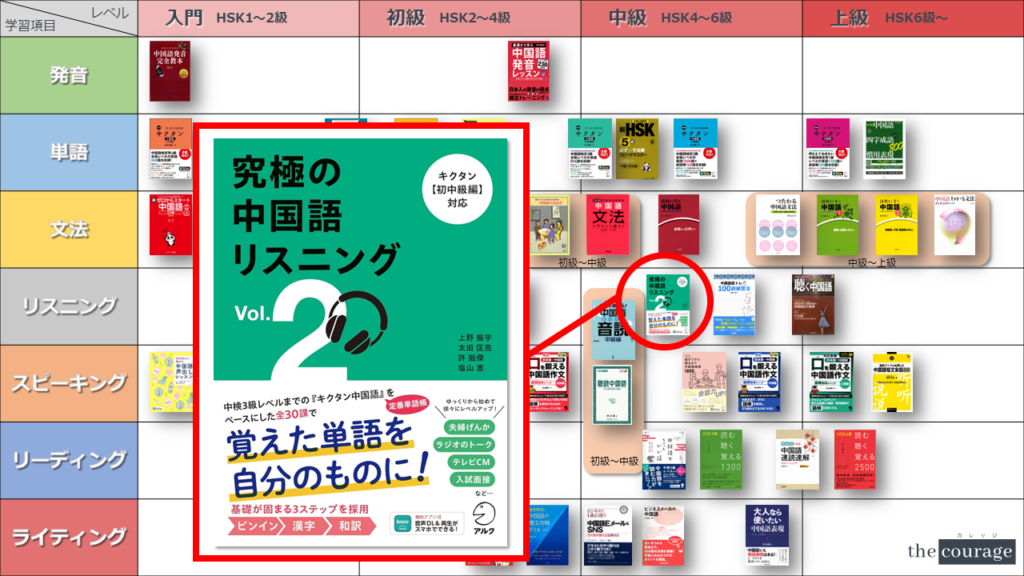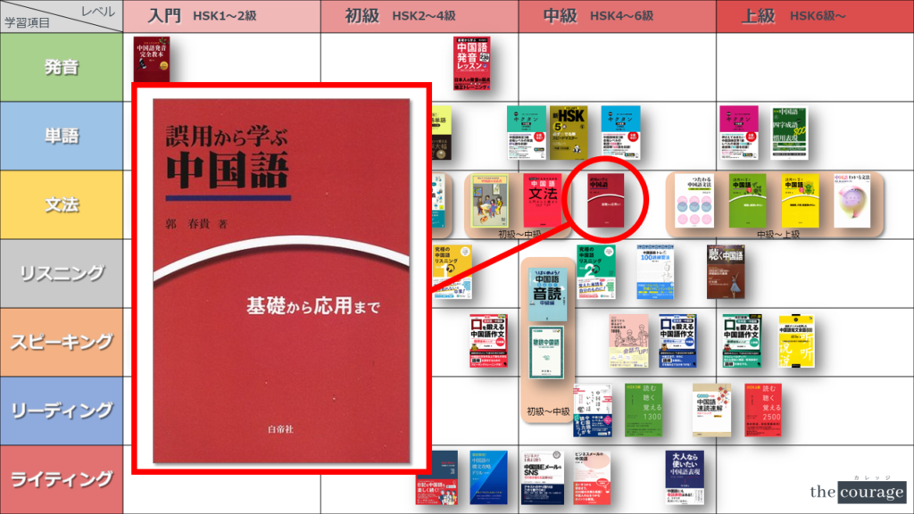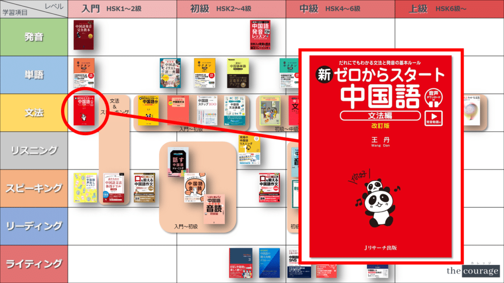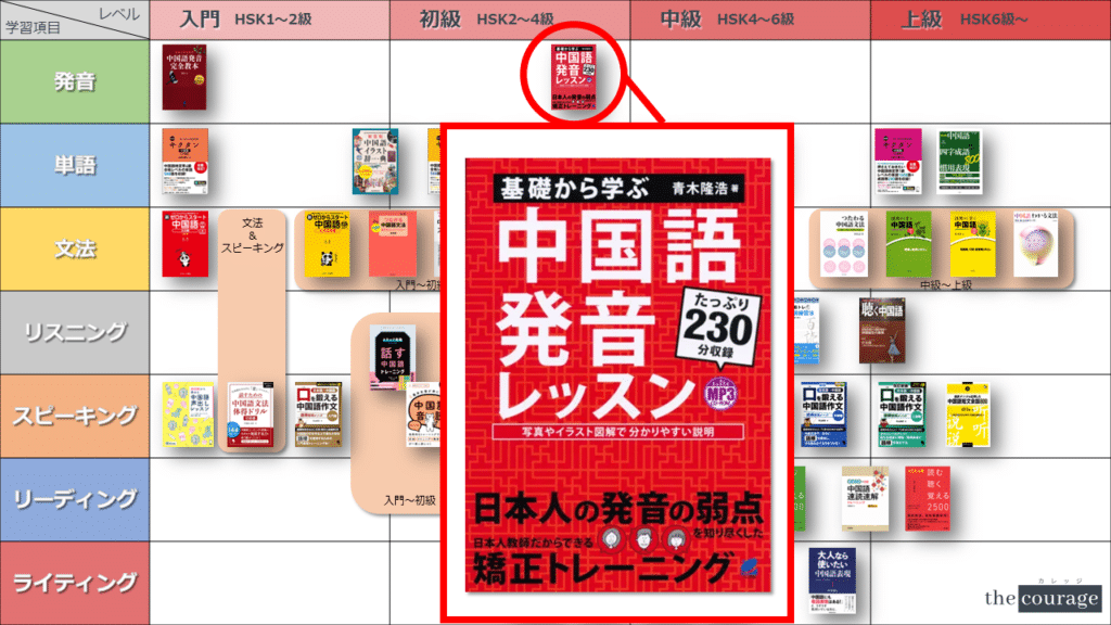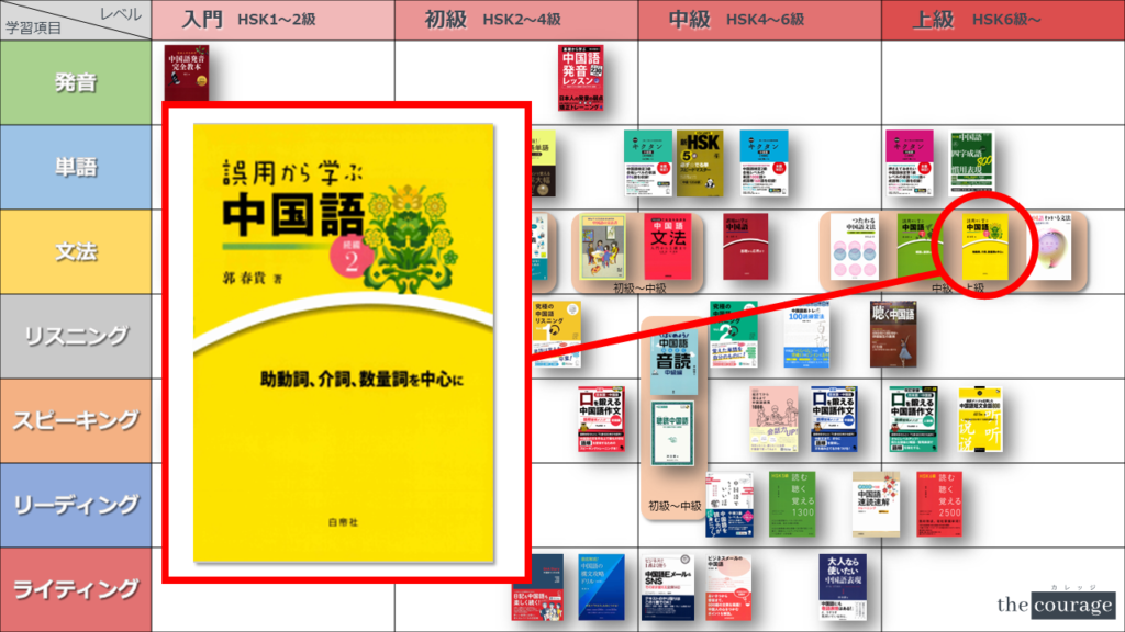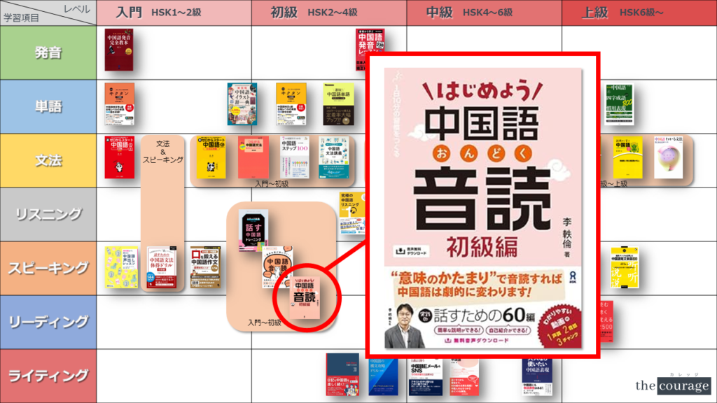 中国語学習者から「おすすめのテキスト、参考書を教えてください!」と相談を受けることが多いので、みなさんに役立つよう、パート別・レベル別の中国語学習のおすすめ参考書マップを作成しています。(毎年更新:2022年版、2023年版、2024年版、2025年版)