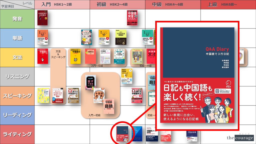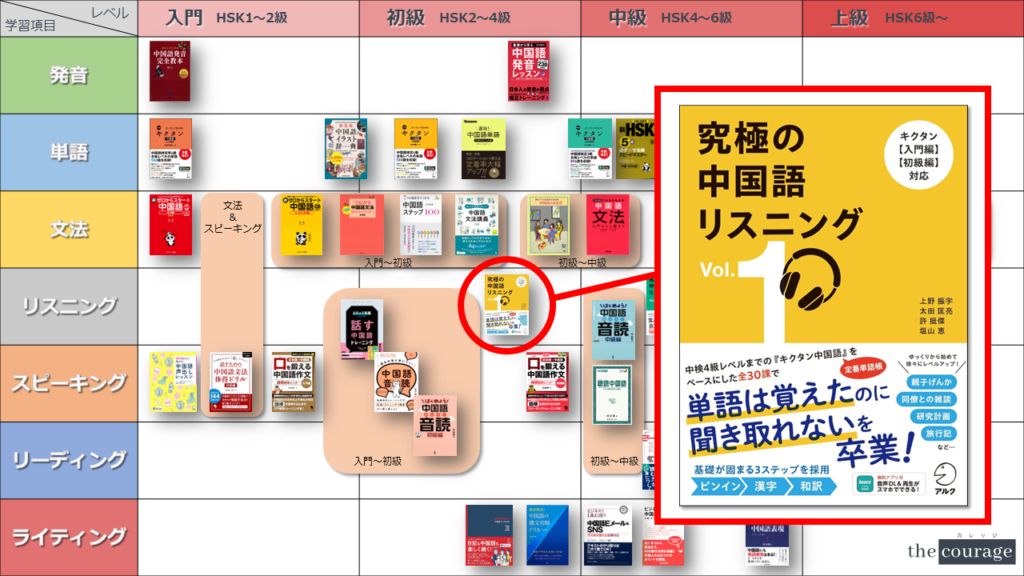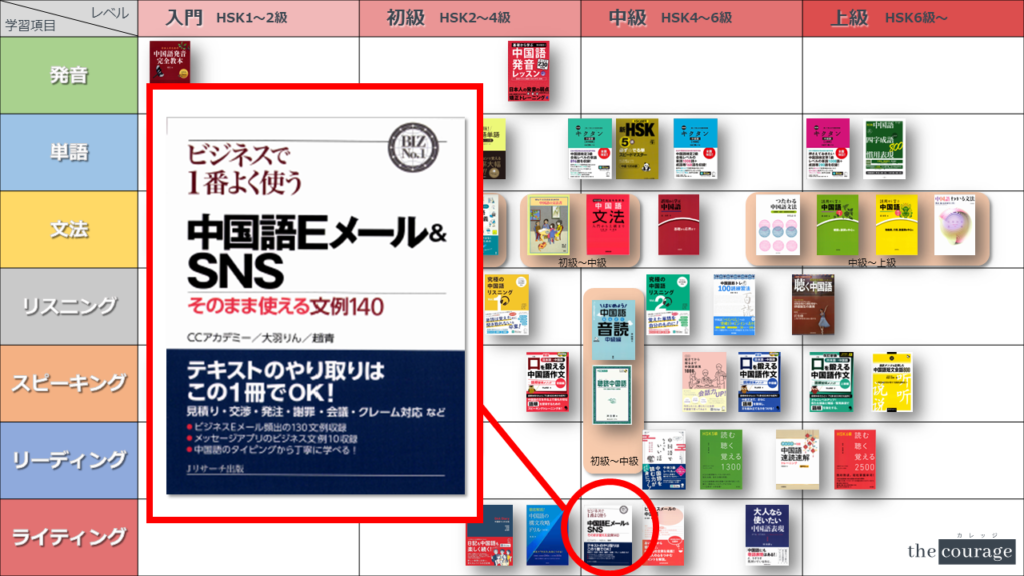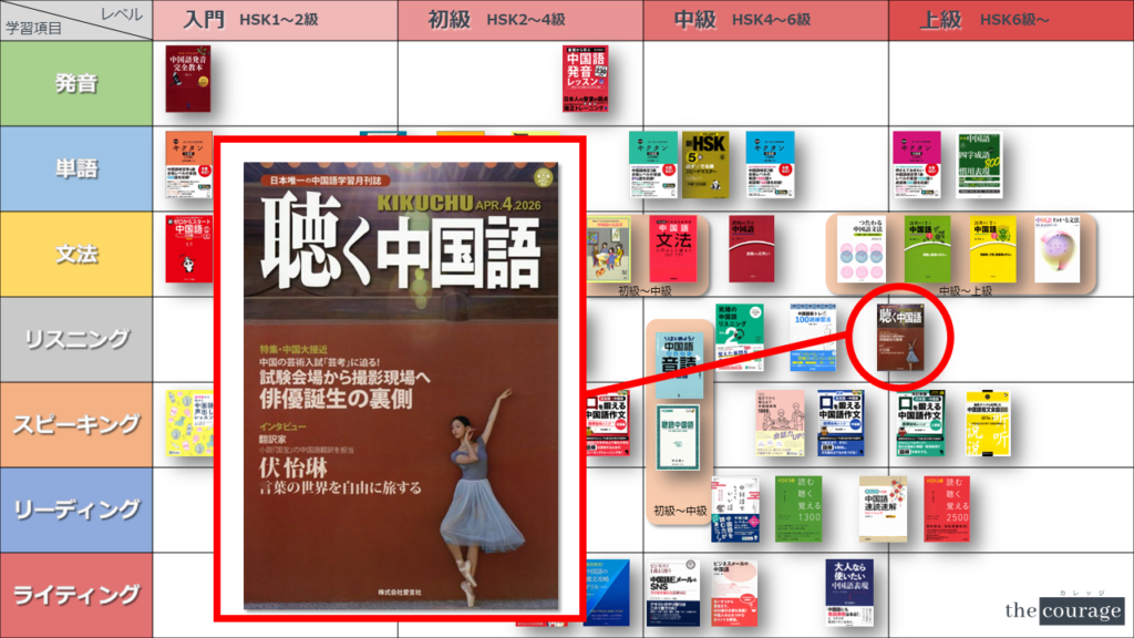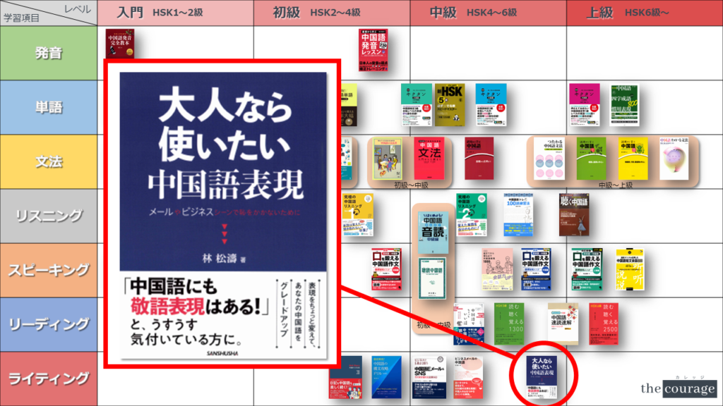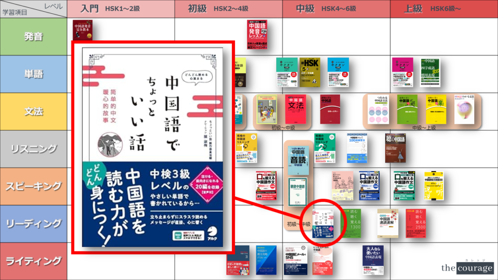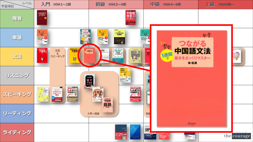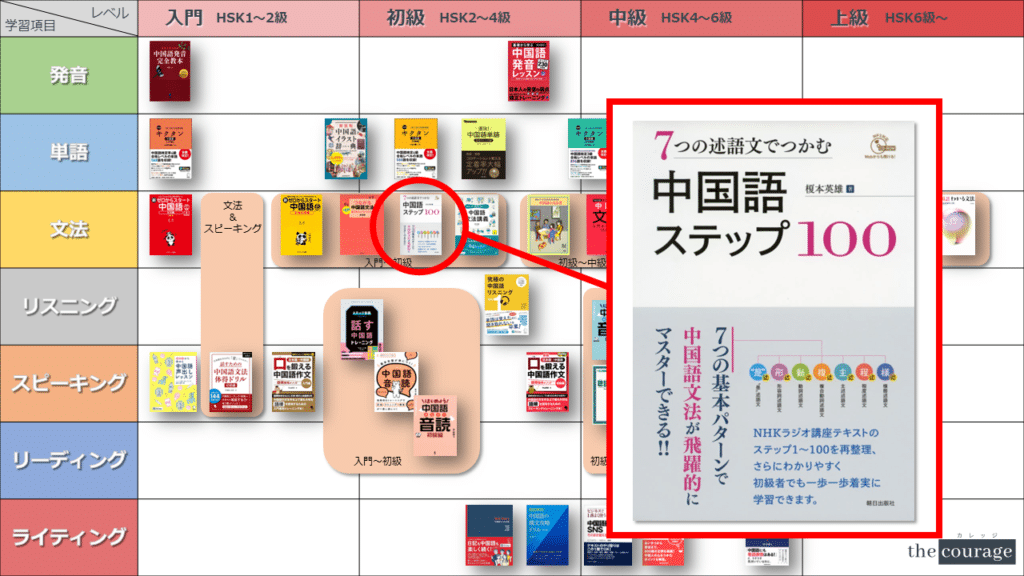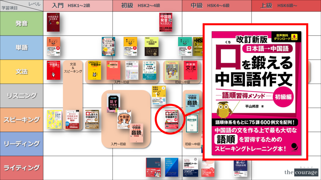 中国語学習者から「おすすめのテキスト、参考書を教えてください!」と相談を受けることが多いので、みなさんに役立つよう、パート別・レベル別の中国語学習のおすすめ参考書マップを作成しています。(毎年更新:2022年版、2023年版、2024年版、2025年版)