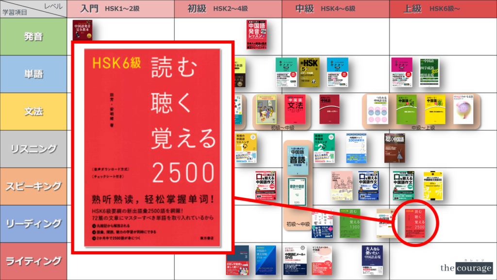『HSK6級読む聴く覚える2500』については詳細をこちらの記事でも紹介させていただいております。